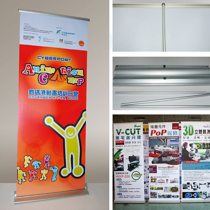 旗、刀旗、易拉寶、拉網(wǎng)展架、彩易展系統(tǒng)、快幕秀、促銷臺(tái)、L形展架、人像立牌、海報(bào)架等。