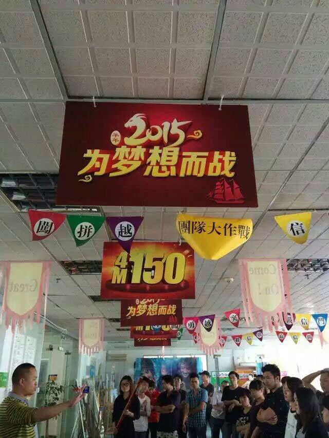 公司制定了2015財(cái)年的奮斗目標(biāo),確定每個(gè)部門的業(yè)績目標(biāo),團(tuán)隊(duì)間進(jìn)行PK,隊(duì)員確立自己的奮斗夢(mèng)想?!盀閴?mèng)想而戰(zhàn)”宣誓儀式啟動(dòng)。我們?nèi)σ愿?,?zhēng)做珠三角數(shù)一數(shù)二的品牌噴繪公司。