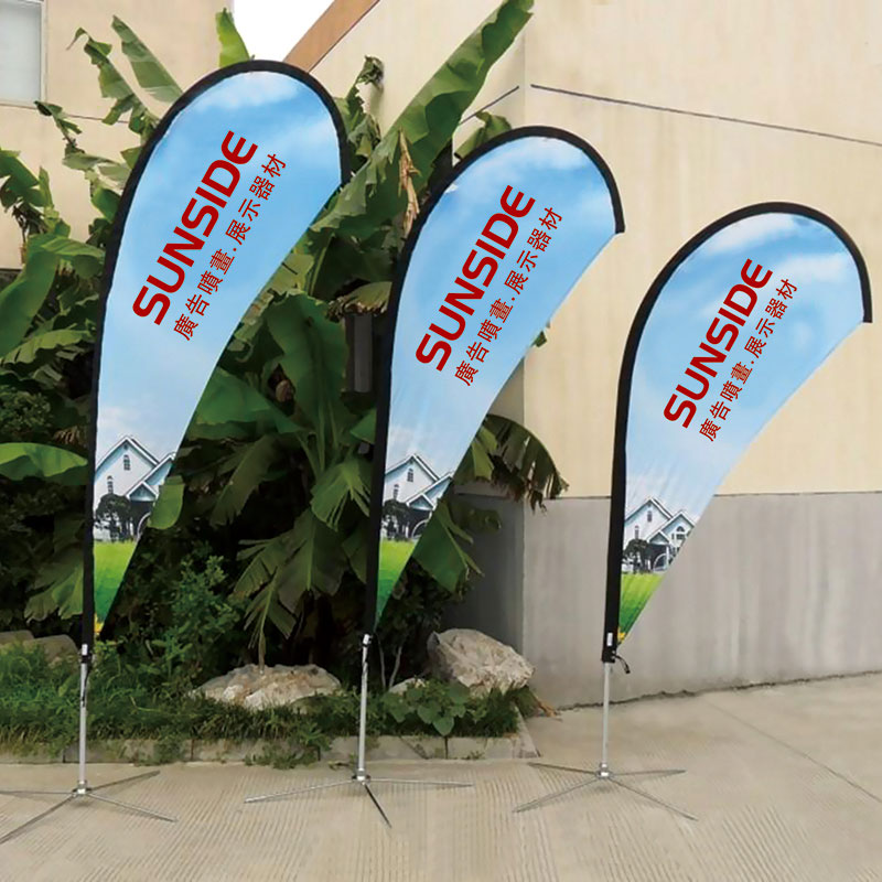 深圳生彩生產(chǎn)各種沙灘旗,刀旗,水滴旗,用于樓盤促銷,戶外廣告展示,新聞發(fā)布會(huì)造勢(shì)。