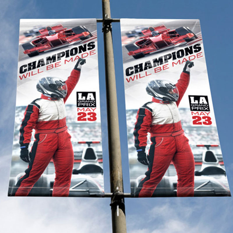 雙面吊旗噴繪,可以兩面噴繪,廣告效果好,畫面不卷邊,平整。是商場中庭吊旗應(yīng)用的經(jīng)典案例。也廣泛用于銀行、賓館、寫字樓的窗簾,以及燈桿旗,既能做廣告,又能遮光。