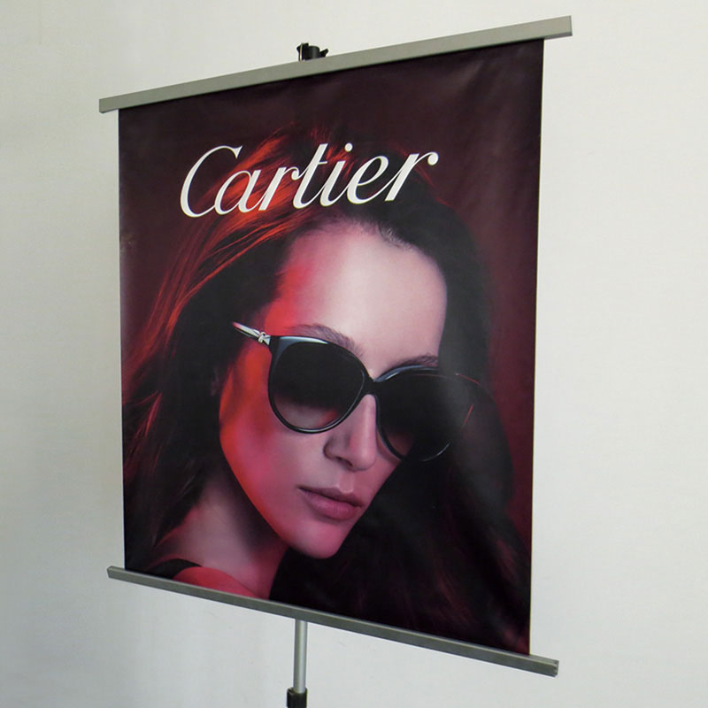 旗、刀旗、易拉寶、拉網(wǎng)展架、彩易展系統(tǒng)、快幕秀、促銷臺(tái)、L形展架、人像立牌、海報(bào)架等。