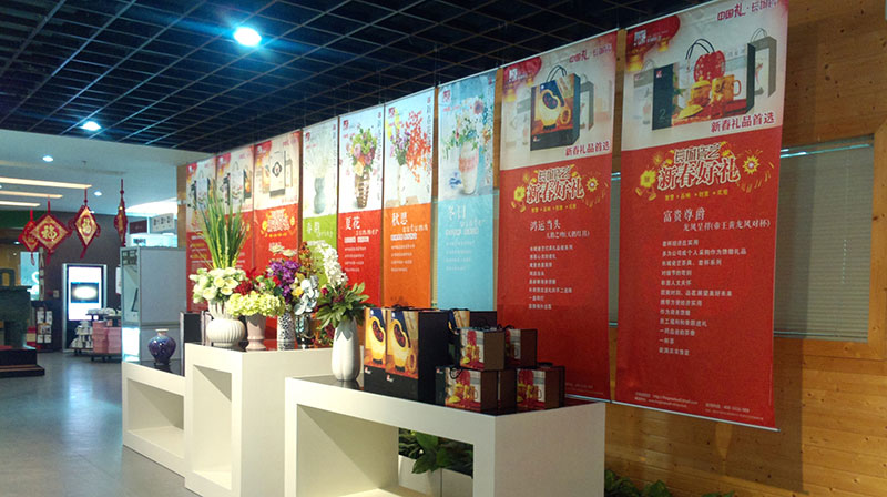 旗、刀旗、易拉寶、拉網展架、彩易展系統(tǒng)、快幕秀、促銷臺、L形展架、人像立牌、海報架等。