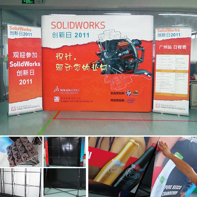 深圳生彩廣告,專業(yè)拉網(wǎng)展架工廠。拉網(wǎng)展架由管件和連接件組成,可以伸縮,方便攜帶;常用的有